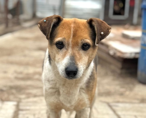 Alessa haben wir bei unserem Besuch als freundliche und interessierte Hündin kennengelernt. Sie nahm unsere Leckerlis gerne aus der Hand und ließ sich auch an der Nase vorsichtig streicheln. Zu mehr fehlte ihr einfach noch der Mut. In einem liebevollen und erfahrenen Zuhause mit festen Bezugspersonen würde sie bestimmt schnell auftauen und Vertrauen fassen.