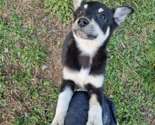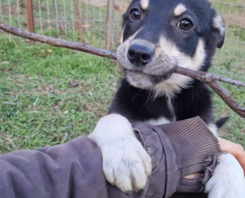 die junge Hündin lebt zur Zeit in einem kleinen rumänischen Tierheim. Hier gibt es gerade eine „Welpenschwemme“… wie oft im Winter…. 🙁