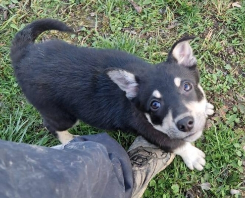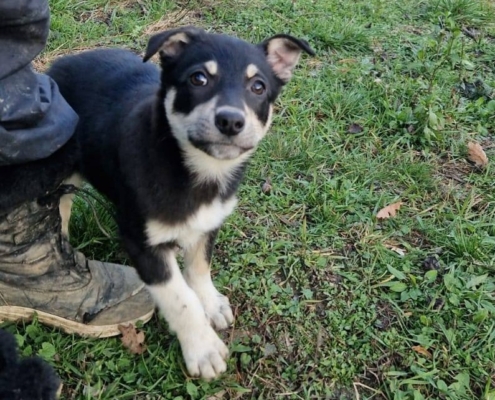 Cristina fand die kleine Eyla bei der Kirche in der Nähe vom Shelter. Ein Zigeuner hat sie wohl dort ausgesetzt. Natürlich nahmen Cristina sie mit und nun ist die Kleine in Sicherheit. Sie hat nun alle Impfungen und kann Ende Januar 2026 ausreisen.