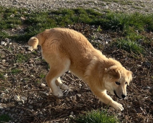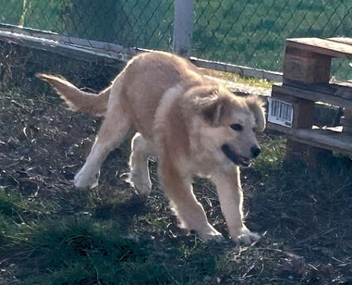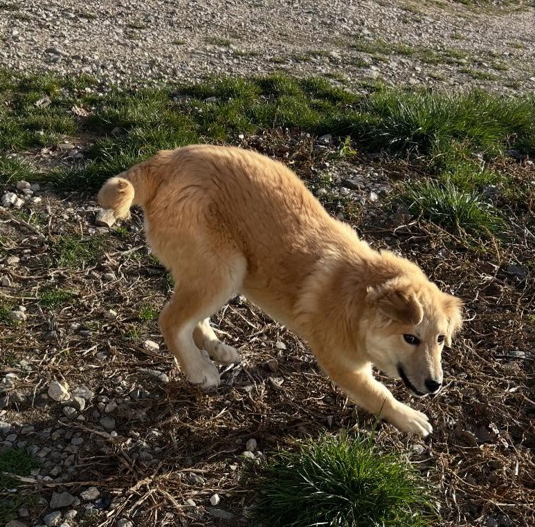 Zu Menschen bin ich sehr aufgeschlossen, lasse mich ausgiebig streicheln und genieße, wenn ordentlich getobt werden kann. Welpentypisch muss ich noch ganz viel lernen und es ist so viel neu für mich. Mit meiner Schwester verstehe ich mich gut – außer beim Füttern. Da zeige ich mich sehr dominant und lasse sie nicht an das Napf, sodass wir getrennt werden mussten. Dieses Verhalten habe ich nur beim Füttern, da ich riesigen Hunger habe.