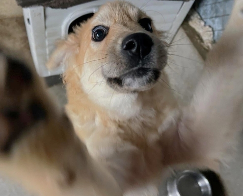 Ich lag zusammen mit meiner Schwester Fluse am Straßenrand, als wir von einer Dame gefunden und ins Tierheim gebracht wurden. Hier möchte ich definitiv nicht mein ganzes Leben verbringen, sondern bei einer liebevollen Familie.
