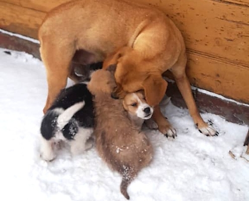 Ein paar Tage später tauchte die Mama der 4 auf und Dana brachte sie zu ihren Kindern. Nun haben sie alle erstmal einen sicheren Platz. Leider verlässt Dana im März 2026 Rumänien wieder und kann die Familie nicht mitnehmen. Deshalb suchen wir dringend Pflegestellen für die 5 Fellnasen.
