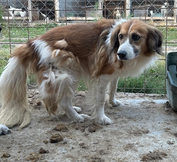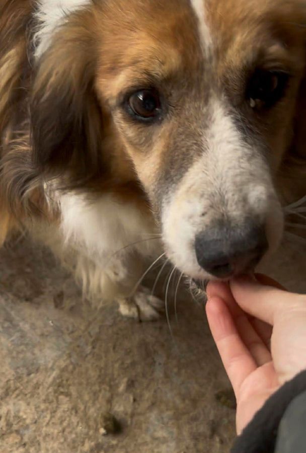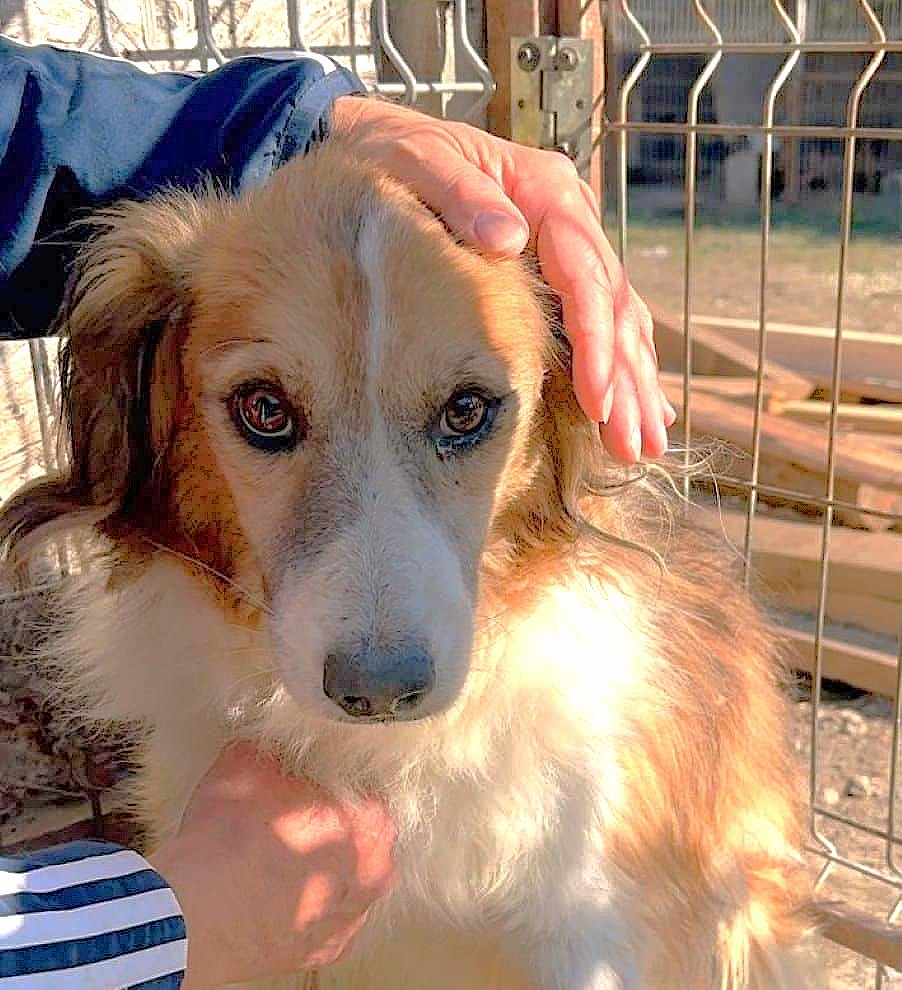 MALCOM hat uns bei unserem Besuch tief berührt. Trotz all seiner Vorsicht war er unglaublich tapfer: Die ganze Zeit blieb er außerhalb seines Hütte, beobachtete uns aufmerksam und nahm sogar vorsichtig unsere Leckerlis an. Als er später in der Sonne am Kennelgitter saß, konnten wir uns langsam an ihn heranpirschen und ihn dort sogar streicheln. Der wuschelige Kerl war sichtlich überrascht und sehr schüchtern, blieb dabei jedoch durchgehend freundlich und devot. Wir hatten klar das Gefühl: Hätten wir mehr Zeit gehabt, mehr ruhige Minuten, mehr sanfte Berührungen, wäre er Schritt für Schritt aufgetaut und hätte vielleicht sogar anfangen können, Berührungen zu genießen.