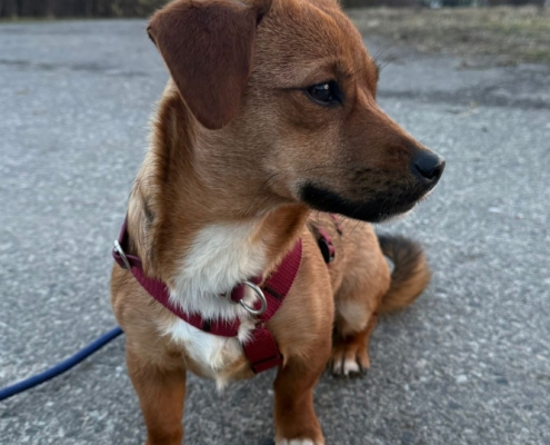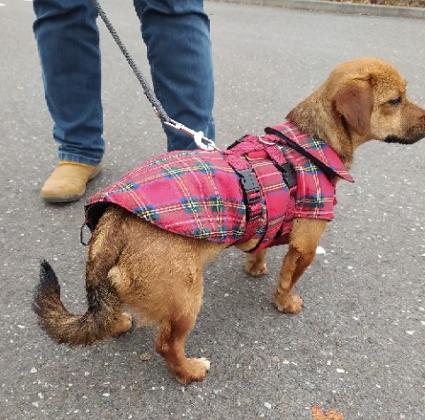 Auf den Arm nehmen geht problemlos und auch sonst ist sie eine unkomplizierte Maus, die, so ist unser Eindruck, erstmal verarbeiten muss dass sie jetzt ohne anderen Hund/ihre Kmpeline zurecht kommen muss… Aber das wird, sie ist sehr schlau und aufgeweckt und wird alles im Handumdrehen lernen.
