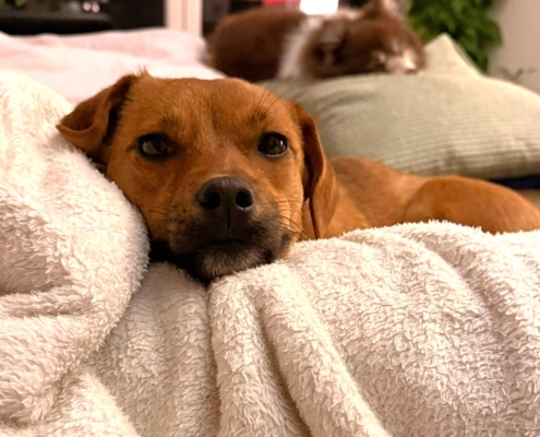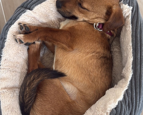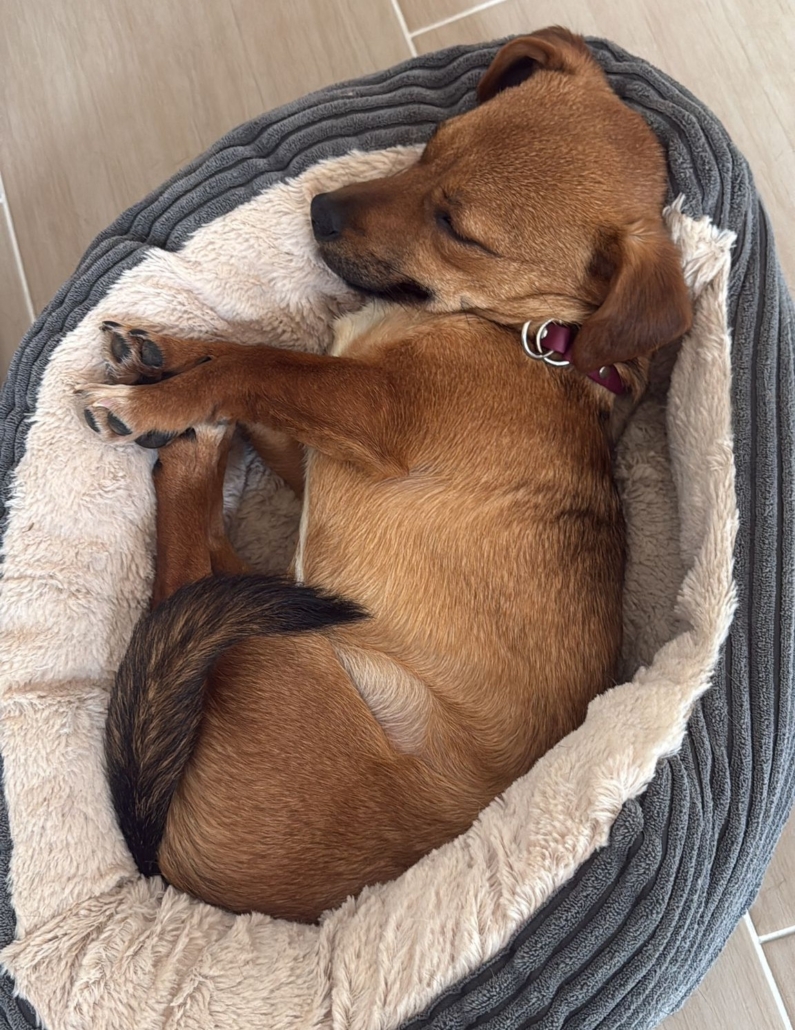 Das liebe Hundemädchen hat sich mittlerweile ganz gut eingelebt. Stubenreinheit Bedarf noch ein bisschen „Feinschliff“ 😉